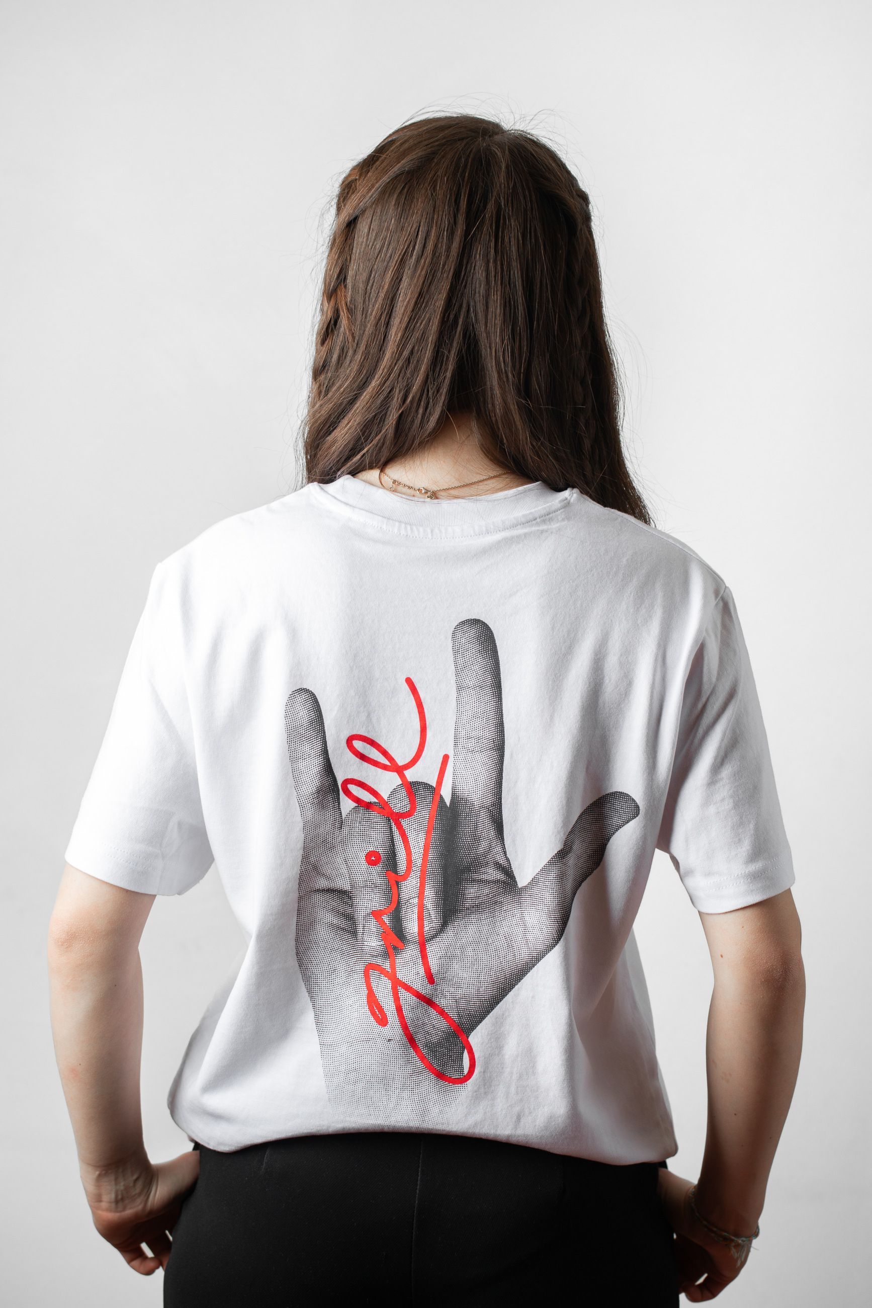 Pokyny pro péči - praní v pračce při 30 °C, perte podobné barvy společně, nežehlete přes potisk, perte a žehlete naruby